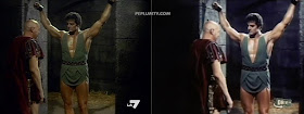 Above and below : At one point in the film, the image is flipped. I don't know which version is the correct one (I'm assuming it's the original Italian one). It's odd but it's not the first time I've seen this happen to PEPLUM films.